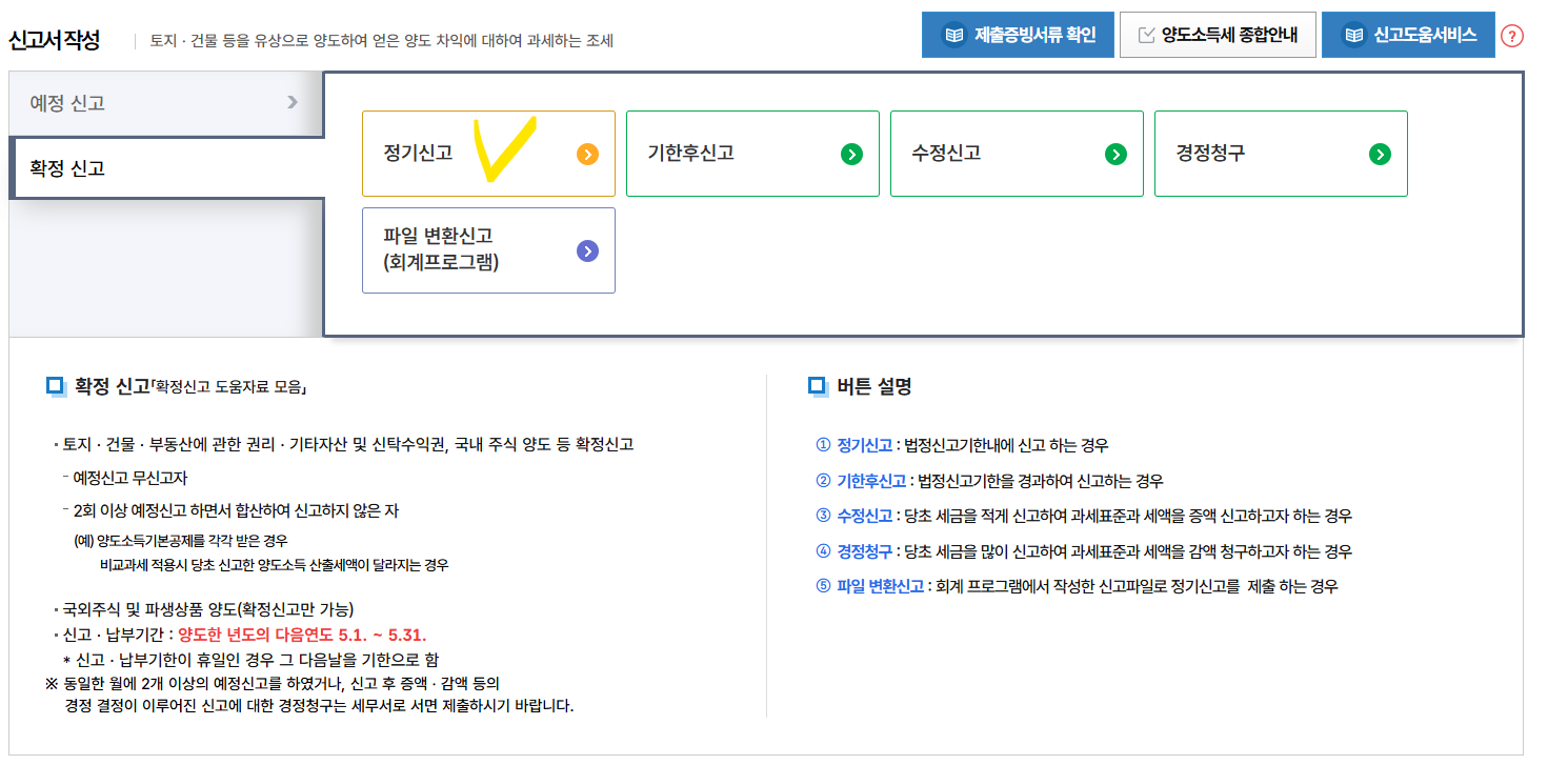 확정신고 > 정기신고 선택